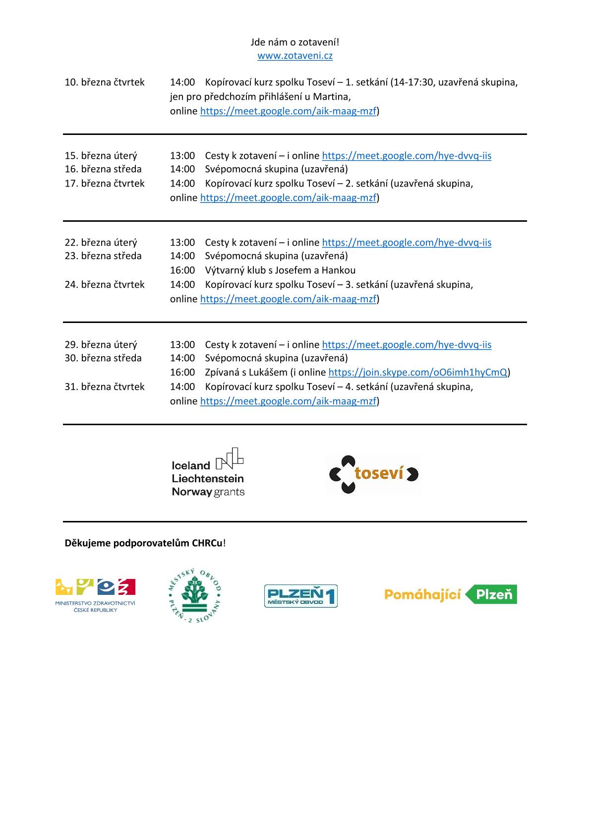 Březnový program CHRCu